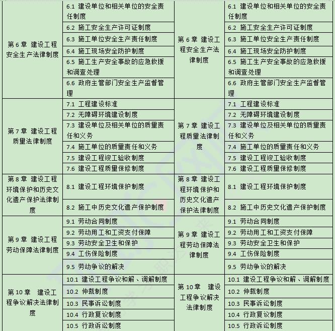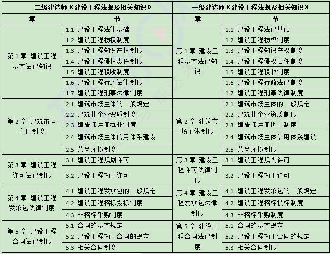 以25年教材为例,二建法规教材和一建法规教材,大纲完全相同,都是10章44节,结构性趋同达100%。下面以章节表格为例进行说明。