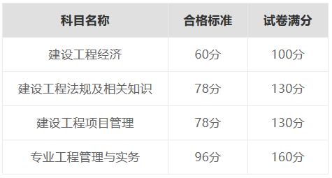 一级建造师考试实行相对固定的合格标准,各科目满分的60%为及格线: