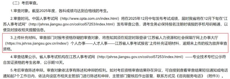 以江苏为例,需要在规定时间内登录江苏省人力资源和社会保障厅网上办事大厅“个人办事——人才人事——江苏省人事考试报名”,上传补充证明材料。
