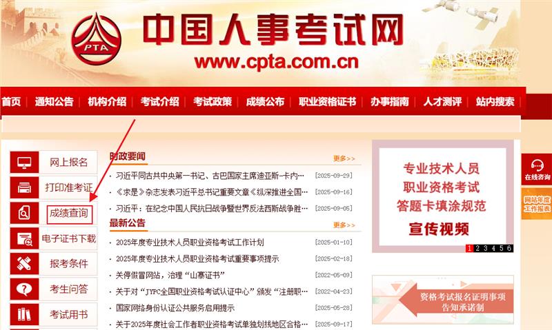 第一步:打开中国人事考试网站www.cpta.com.cn